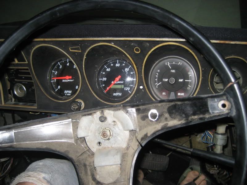 Dragged the crown out of the carport, where it's been since christmas, and back in the shed. Decided to do some more wiring on it. It's wiring, and it's mostly hidden so there is fark all show and tell value in it but I did wire the Autometers up so here's a pic.