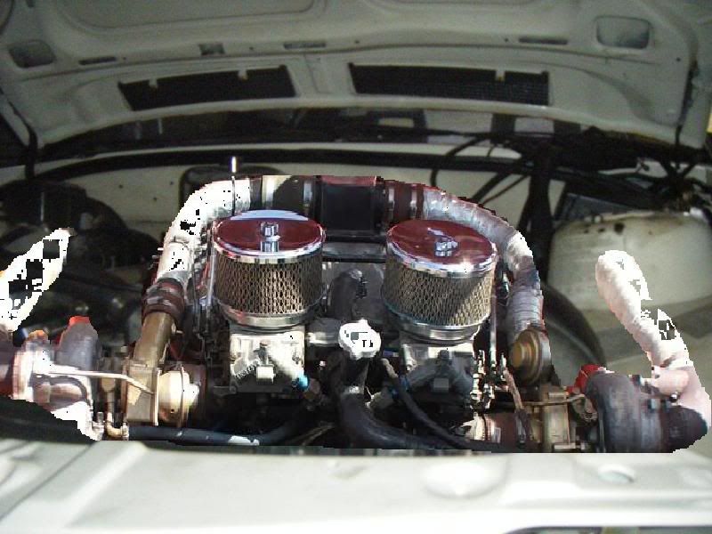 That looks like the engine bay of that torana that used to skid at archerfield every friday a few years ago. I think it was a lx torana, possibly big block with twin s5 rx7 turbos...